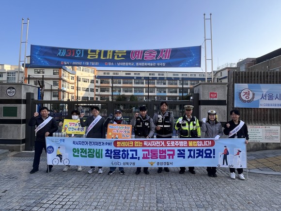 서울 성북구(구청장 이승로)는 11월 5일 남대문중학교 정문 앞에서 ‘픽시자전거 및 전기자전거·PM 안전이용 캠페인’을 실시했다고 밝혔다.