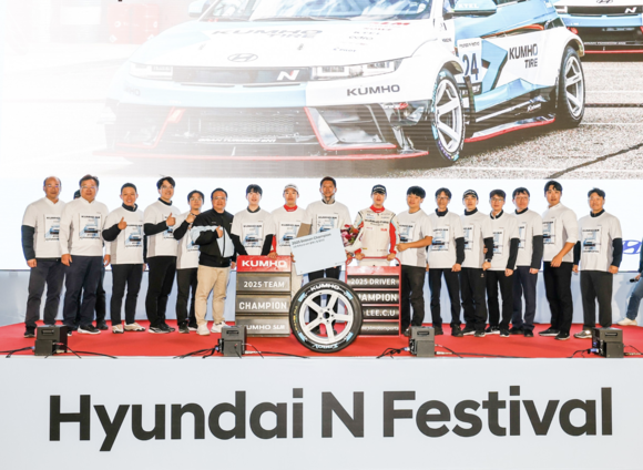 금호타이어(대표 정일택)가 후원하는 금호 SL모터스포츠팀이 ‘2025 현대N페스티벌 eN1 클래스’에서 드라이버, 팀, 타이어 제조사 부문 챔피언 타이틀을 모두 차지하며 3관왕을 달성했다.