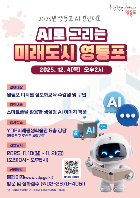 구는 이번 성과를 바탕으로 구민의 디지털 활용 능력을 한 단계 높이기 위해 ‘생성형 인공지능(AI) 활용 경진대회’를 새롭게 개최한다. 올해 대회는 지난해 디지털 기초 지식 퀴즈 형식 대회에서 발전해, ‘인공지능(AI)으로 그리는 미래도시 영등포’를 주제로 구민의 창의적 아이디어와 실질적인 활용 역량을 겨루는 장으로 진행된다.