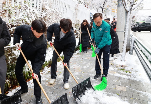 지난해 유성훈 금천구청장과 직원들이 제설 작업을 하고 있다. 사진=금천구청