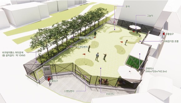 이달 중 ▲대지정리 ▲경계 울타리(펜스) 설치 ▲인조잔디 연습장 및 쉼터 조성 등을 마친 후 내달부터 주민들에게 시설을 개방한다. 도로와 인접한 부지 특성상 안전을 고려해 띄워치기를 금지하고 퍼팅연습만 할 수 있도록 할 방침이다.