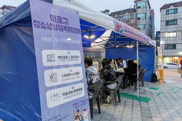 찾아가는 청소년 상담 부스를 운영하고 있는 마포구. 사진=마포구청