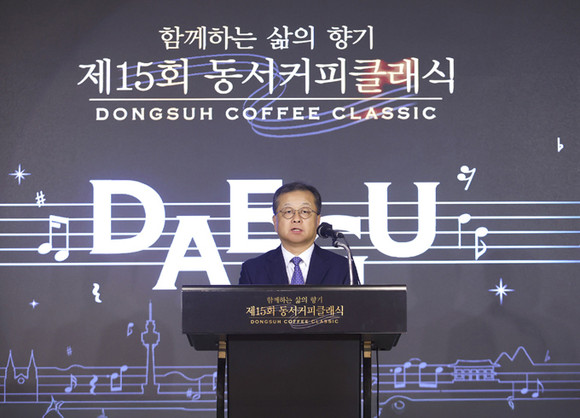 지난 12일 대구콘서트하우스 그랜드홀에서 열린 ‘제15회 동서커피클래식’에서 김광수 동서식품 사장이 인사말을 하고 있다. 사진=동서식품