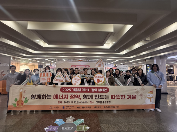 ‘2025 겨울철 에너지 절약 캠페인’은 12일 오후 2시부터 고속버스터미널 일대 고투몰 중앙광장에서 진행됐다. ‘함께하는 에너지 절약, 함께 만드는 따뜻한 겨울’이라는 슬로건 아래, 주민들이 에너지 절약의 의미를 체감하고 자발적으로 참여하도록 한다는 취지다. 캠페인에는 한국에너지공단 서울본부, 서초탄소제로샵, 에코허브, 푸른서초환경실천단 등이 함께했다.