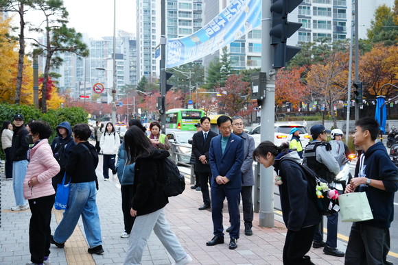 이른 아침부터 계성고등학교 시험장을 찾은 이승로 성북구청장은 관계 공무원들과 함께 학교 주변 교통 상황을 점검하며 시험장으로 들어서는 수험생들에게 응원의 메시지를 전했다.