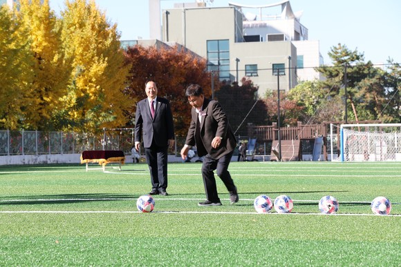 이날 박강수 마포구청장은 개회식에 참석해 축사를 전하고 테이프 커팅식에 참여했다. 이후 축구부 학생들과 함께 시축 행사를 하며 뜻깊은 시간을 공유했다.