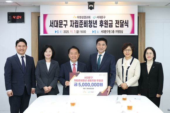 서울 서대문구(구청장 이성헌)는 최근 아현성결교회(담임목사 손제운)로부터 자립준비청년 후원금 500만 원을 기탁받았다고 17일 밝혔다.