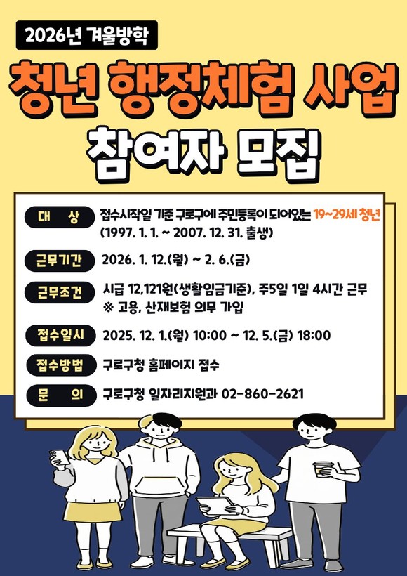 서울 구로구(구청장 장인홍)는 2026년 겨울방학을 맞이해 청년 행정체험 사업 참여자를 모집한다.