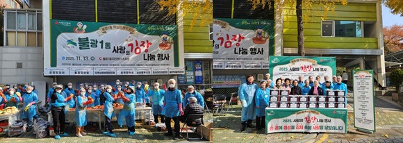 서울 은평구(구청장 김미경) 불광1동 직능단체연합회는 지난 14일 불광1동 주민센터 앞마당에서 ‘사랑의 김장 나눔 행사’를 성황리에 개최했다고 밝혔다.