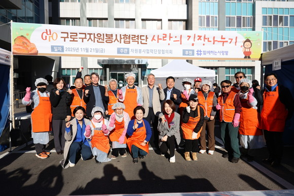 서울 구로구(구청장 장인홍)가 21일 구청 광장에서 자원봉사협력단과 함께하는 ‘사랑의 김장 나누기’ 행사를 성황리에 개최했다.