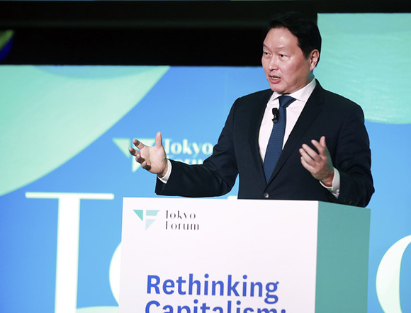 최태원 SK그룹 회장 겸 최종현학술원 이사장은 21일 일본 도쿄에서 열린 ‘도쿄포럼 2025’에서 “현재의 자본주의 하에서 우리는 환경 문제, 사회 양극화 등 다양한 사회 문제들에 직면해 있으며 이를 해결해 얻는 사회적가치를 측정하고 관리하는 새로운 자본주의의 틀이 필요하다”고 말했다.