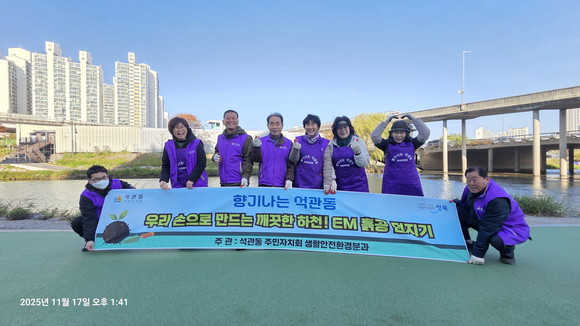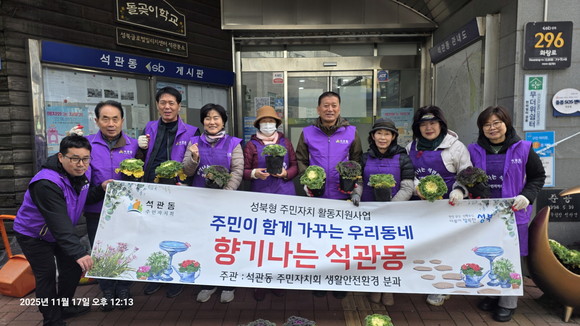 서울 성북구 석관동 주민자치회 생활안전환경분과가 지난 17일 겨울맞이 관내 주요 상습무단투기지역 13개소 화단에 꽃을 식재하고 EM흙공을 활용한 하천정화활동을 진행했다.