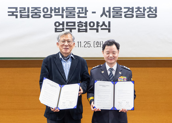 국립중앙박물관(관장 유홍준)은 11월 25일(화) 오후 서울경찰청(청장 박정보)과 업무협약을 체결했다. 협약에 따라 양 기관은 박물관 문화유산을 기반으로 한 심리 회복 프로그램을 함께 진행한다.