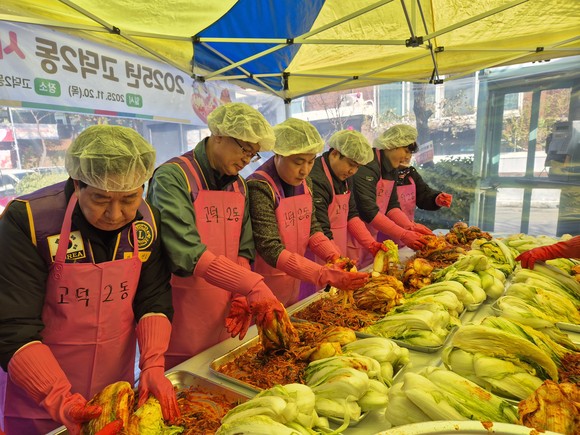 서울 강동구(구청장 이수희) 고덕2동은 지난 20일, 동주민센터에서 ‘사랑의 김장나눔 한마당’을 열고, 겨울철 어려움을 겪는 이웃을 위해 김장김치 270박스를 준비했다고 밝혔다.