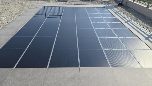 GS건설이 ‘올인원 옥상 바닥시스템’을 적용해 태양광 모듈과 타일 마감재를 설치한 모습. 사진=GS건설