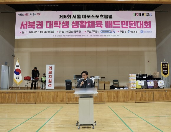 박강수 서울 마포구청장은 11월 30일 오전 10시, 성미산체육관에서 열린 ‘2025 서북권 대학생 배드민턴 대회’에 참석해 참가자들을 격려했다.