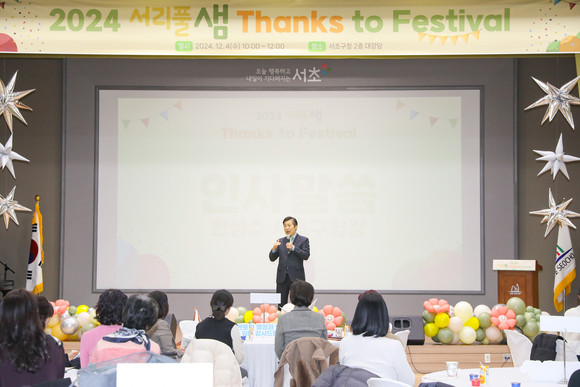 서울 서초구(구청장 전성수)는 주민참여형 교육복지사업인 ‘서리풀 샘’의 6주년을 맞아 오는 12월 2일, 서초구청 2층 대강당에서 『서리풀 샘 ‘Thanks to Festival’』을 개최한다고 밝혔다. 이번 행사는 그동안 아이들의 성장을 위해 헌신해 온 멘토들에게 감사의 마음을 전하고, 멘토·멘티 간 유대와 협력을 한층 더 강화하고자 마련됐다.