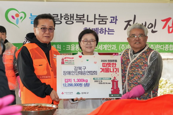 약 1,300만원 상당의 김치 1,300kg는 2026년 희망온돌 따뜻한 겨울나기 사업에 기부돼 의미 있는 나눔으로 이어졌으며, 강북구장애인단체총연합회 산하단체 회원 등 총 350명에게 전달됐다.