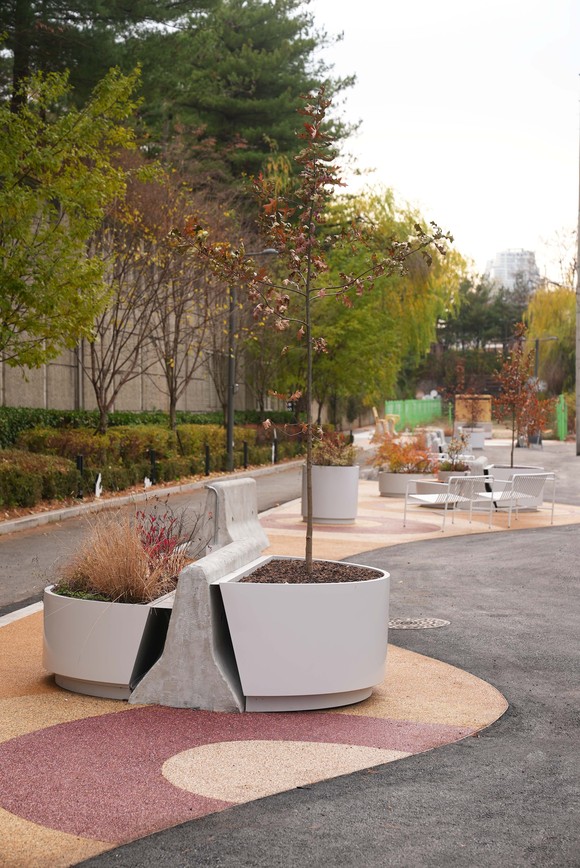 ‘개포3동 양재천 가든 로드’는 약 260m에 이르는 정비 구간으로, 기존에 보도와 차도 사이를 가로막고 있던 콘크리트 방호 블록을 폐기하지 않고 재활용한 것이 특징이다. 블록은 보수를 거쳐 식재 화분과 벤치, 조명, 운동시설 등으로 재활용돼 공간의 정체성을 살렸다. 주민들은 옛 공간의 기억과 새로워진 풍경을 동시에 경험할 수 있게 됐다.