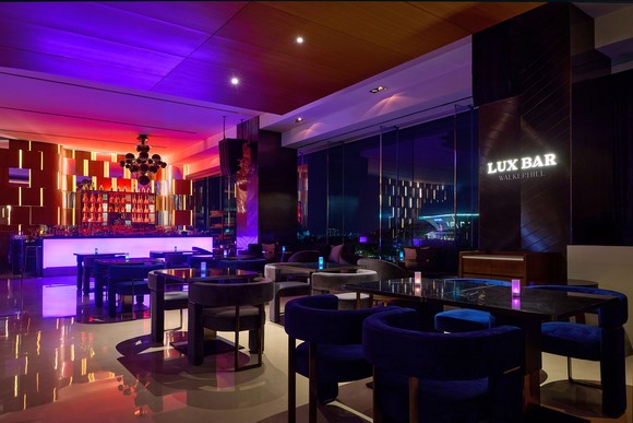 그랜드 워커힐 서울 16층의 럭스바는 총면적 500㎡ 규모의 복층 구조로 조성됐다. 양 측면통창을 통해선 한강의 야경과 워커힐의 야경을 한눈에 감상할 수 있다. 2층에는 낮은 천고가 아늑함을 더하는 부스 좌석 7개가 마련돼 있고, M층에는 믹솔로지스트의 칵테일을 즐길 수 있는 바가 있다. 1층에는 세 개의 프라이빗룸(L·U·X)을 새롭게 구성했다. L룸은 최대 16명까지 이용할 수 있고, U룸은 최대 10명까지 수용하는 노래방 시설을 갖췄다. 한강 야경을 배경으로 노래를 즐길 수 있는 X룸은 럭스바의 하이라이트 공간이다.