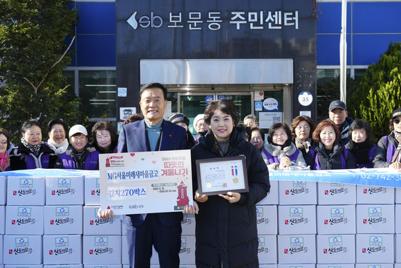 서울 성북구(구청장 이승로)에 소재한 MG서울미래새마을금고(이사장 이숙희)가 지난 3일 지역사회 나눔 실천의 일환으로 김치 270박스를 기부했다.