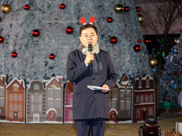 진교훈 강서구청장이 5일(금) 발산역 1번 출구 앞 광장에 조성된 ‘마곡 위시 빌리지’ 점등식에서 주민들과 함께 크리스마스 트리를 보며 소원을 빌었다.