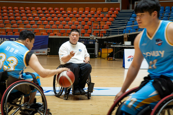 “개인적으론 13년간 휠체어농구 선수로 뛰었어요. 이후 2년의 코치 생활을 거쳐 올해로 감독 6년 차를 맞고 있고요. 서울시청 팀에서 코치와 감독직을 수행하며 팀을 이끌었고, 블루휠스가 서울시청 팀을 승계하면서 자연스럽게 활동을 잇게 됐습니다. 익숙한 환경을 떠나 기업이 운영하는 실업팀으로 옮기는 일은, 사실 많은 고민이 필요한 결정이에요. 하지만 함께 훈련해온 선수들의 바람이 컸고, 무엇보다 더 안정적인 환경에서 선수들과 함께 농구에 집중할 수 있겠다는 확신이 서면서 블루휠스에 합류하게 됐습니다. 덕분에 지금은 선수들도 저도 더 좋은 환경에서 운동하며 성장하게 됐어요.”