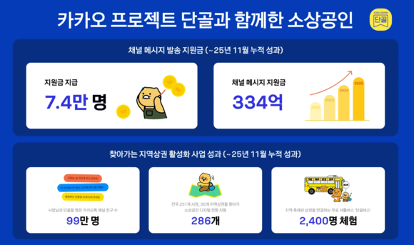 카카오가 소상공인의 디지털 역량 강화를 목표로 운영하는 ‘프로젝트 단골’의 2025년 성과를 공개했다. 카카오는 9일 디지털 전환 교육, 온오프라인 홍보 지원, 지역 기반 프로그램 확대 등을 통해 지역 상권 활성화와 소상공인 경쟁력 제고에 주력했다고 밝혔다.