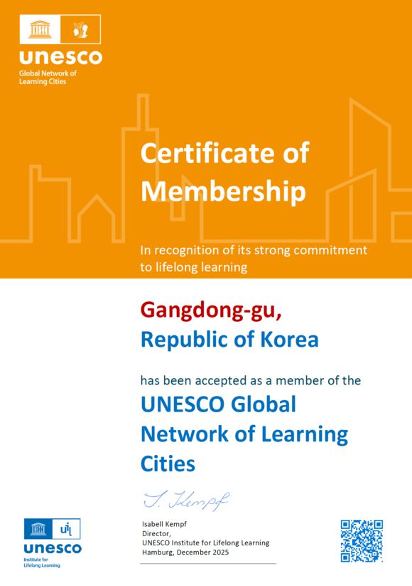 서울 강동구(구청장 이수희)는 지난 5일, 유네스코 글로벌 학습도시(GNLC: Global Network of Learning Cities)로 최종 선정되며 우수한 평생교육 인프라와 정책을 국제적으로 인정받았다고 밝혔다.