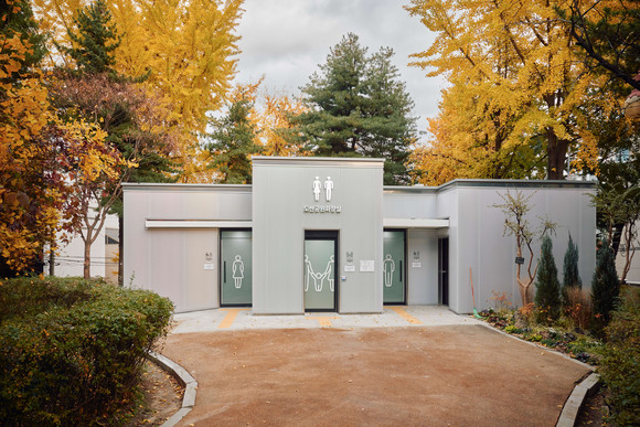 도산공원 화장실은 패션 명품거리에 위치해 외국인 관광객과 시민 이용이 많은 장소다. 외관은 낮에는 고급스러운 파스텔 톤의 구조물이지만, 밤이 되면 조명 아래 은은한 빛이 벽면을 감싸며 하나의 조형물처럼 빛난다. 기능성과 도시미관을 동시에 고려한 설계로, 공원을 찾는 이들에게 강남의 도시 디자인 수준을 보여주는 공간이 됐다.