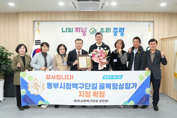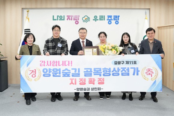 서울 중랑구(구청장 류경기)는 ▲양원숲길(망우본동) ▲동부시장 백구단길(면목2동) ▲동부시장 미드랑길(상봉2동, 면목2동)을 제11·12·13호 골목형상점가로 신규 지정하고, 12월 15일 ‘골목형상점가 지정서 수여식’을 개최했다.