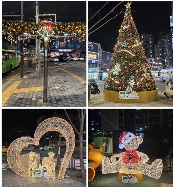구는 구민들이 따뜻한 연말 분위기를 느낄 수 있도록 관내 그늘막과 권역별 인도광장·교통섬 등에 크리스마스 장식을 설치했다며 이같이 밝혔다.