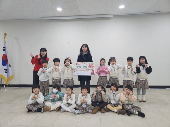 서울 성북구 한마음유치원(원장 박신형)이 지난 16일 원생 33명이 직접 모은 기부금 80만7천500원을 장위1동주민센터에 전달했다고 밝혔다. 전달된 기부금은 지역 내 이웃을 돕는 데 활용될 예정이다.