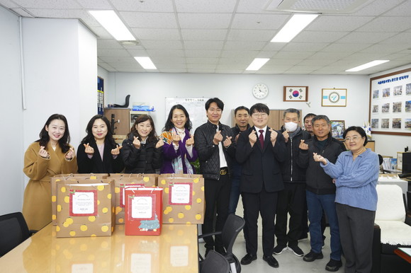 서울 성북구(구청장 이승로) 길음동 새생명교회가 연말을 맞아 지역사회에 감사의 뜻을 전하기 위해 지난 17일 성북구청 청소행정과 환경공무관 휴게실을 방문해 간식 꾸러미 130여 개를 전달했다.
