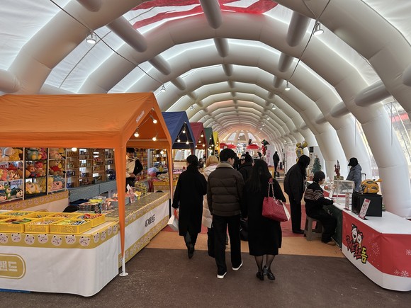 서울 마포구 레드로드 R6 에어돔에서 열리고 있는 ‘고창 파머스마켓’과 ‘엄빠랑 크리스마스마켓 가자’ 행사가 구민과 관광객들의 발길을 사로잡으며 인기를 끌고 있다.