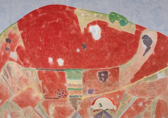 느린 풍경-유정길, 2021, 장지에 분채, 200x278cm