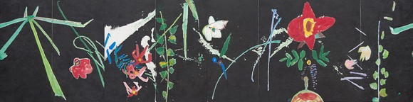 싱그러운 폭죽, 2023, 장지에 먹, 분채, 200x800cm