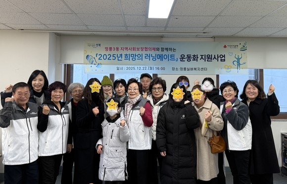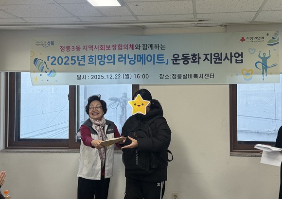 서울 성북구(구청장 이승로) 정릉3동 지역사회보장협의체(위원장 김정자)는 12월 22일 오후 4시, 관내 취약계층 아동·청소년의 건강한 성장을 지원하기 위한 ‘희망의 러닝메이트’ 운동화 전달식을 개최했다.