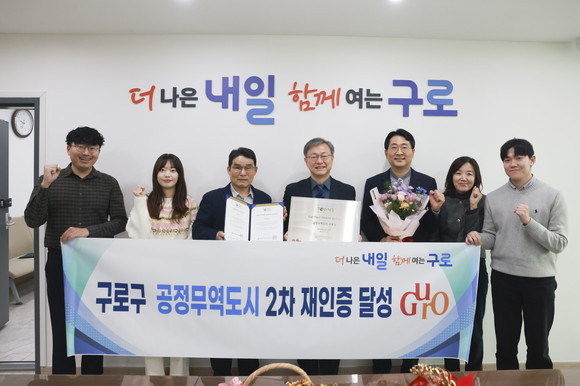 서울 구로구(구청장 장인홍)가 공정무역 실천 도시로서의 위상을 다시 한번 입증했다. 구는 12월 27일 사단법인 한국공정무역마을위원회로부터 ‘공정무역도시’ 2차 재인증을 획득했다.