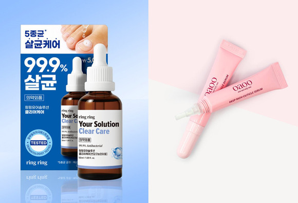 ‘링링 유어솔루션 토탈앰플’은 비타민, 단백질 성분이 약해진 손톱에 영양을 공급한다. ‘오아오 딥리치 큐티클 세럼’은 붓펜 타입으로 큐티클 라인에 도포하면 된다. ‘오아오 올인원 네일크림’은 라이트한 제형으로 빠른 흡수를 돕는다.