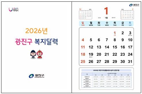 서울 광진구(구청장 김경호)는 다양한 복지 정보를 수록하여 기초생활수급자가 손쉽게 알 수 있도록 ‘2026년도 복지달력 및 복지지원 안내문’을 제작해 배포한다.