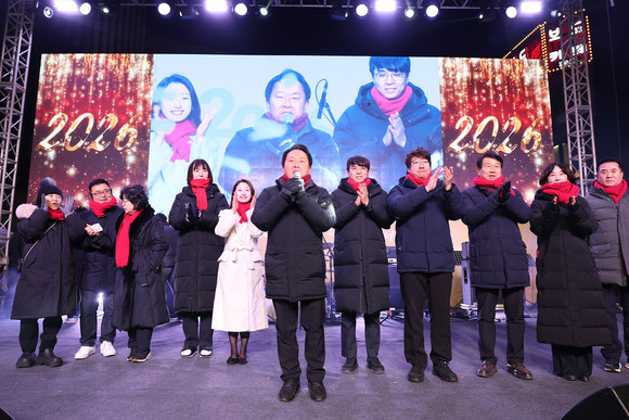 1일 0시 정각에 맞춰서는 ‘카운트다운 세리머니’가 펼쳐져 새해 분위기를 더했으며 참여 시민들은 눈처럼 흩날리는 종이 조각 아래에서 서로서로 덕담을 나누며 2026년 첫 순간을 함께했다.