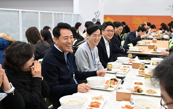 이어 오 시장은 구내식당에서 직원들과 ‘현미떡국’을 먹으며 새해 포부와 계획 등 다양한 이야기를 나눴다. 이날 점심식사는 서울시민 걷기‧건강생활실천율 1위 달성(질병청, 2025 지역사회건강조사)을 기념해 ‘더 건강한 서울9988’ 사업 담당자들이 함께했다.