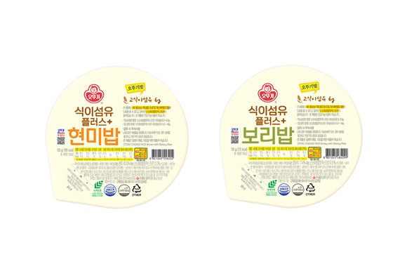 ‘식이섬유 플러스 현미밥·보리밥’은 1인분(130g)에 식이섬유 6g을 함유한다. 이는 기존 오뚜기밥(210g)의 식이섬유 함량 대비 약 3배가량 높은 수치이자, 식약처가 제안하는 하루 식이섬유 권장량의 약 24%를 충족한다는 설명이다.