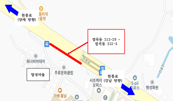 이번 사업은 보행 불편과 도시미관 저해 문제를 해소하기 위해 추진됐다. 해당 구간은 지역 내 헌릉로(염곡동 212-25~212-3) 약 150m 구간으로, 폭 2.5~3.0m의 보행로가 경사지고 노후화되어 보행 불편은 물론 미끄럼 사고 위험이 높다는 민원이 지속적으로 제기된 바 있다. 주민의견 수렴 결과 주민 91%가 찬성한 이번 사업은 구의 노력으로 공사비 전액 시비를 확보해 지난해 10월부터 추진됐다.