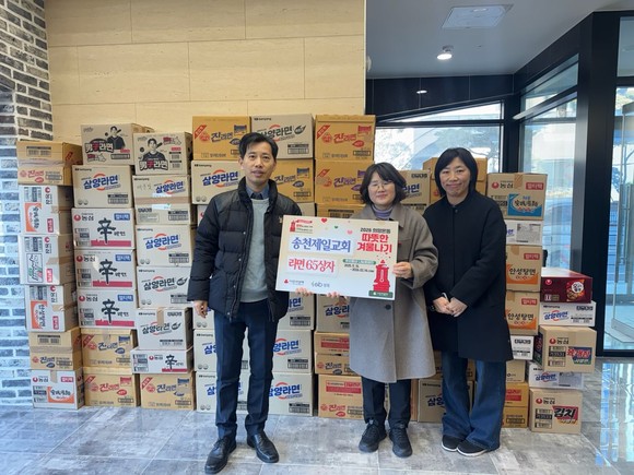 송천제일교회는 지난 6일 교회 신도들의 자발적인 참여로 마련한 라면을 길음2동 주민센터에 전달했다. 이번 후원은 교회가 매년 진행하는 나눔 행사 ‘사랑의 라면 트리’를 통해 마련됐다.