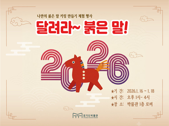이번 행사는 새해를 상징하는 ‘붉은 말’의 의미를 현대적으로 풀어낸 체험 프로그램으로, 박물관을 찾은 관람객들이 직접 <붉은 말 키링>을 만들어보는 참여형 교육활동으로 진행된다. 붉은 말이 지닌 힘과 생동의 상징성을 바탕으로, 새해의 희망과 경기도박물관 개관 30주년 축하 메시지를 전하고자 기획됐다.