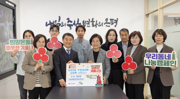 서울 은평구(구청장 김미경)는 지난 8일 응암2동 주민자치회 김대혁 감사와 서우건설산업 김정현 씨와 함께 ‘2026 희망온돌 따뜻한 겨울나기’ 성금·성품 전달식을 개최했다고 밝혔다.