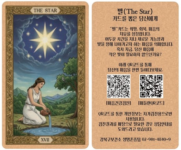 구는 관내 신한은행 금융 창구에 큐알코드(QR코드) 기반 타로카드 형태의 마음건강검진 시스템을 도입해 누구나 부담 없이 자신의 마음 상태를 점검할 수 있도록 했다. 비치된 타로카드 뒷면의 큐알코드를 통해 마음건강검진을 실시하고, 필요한 경우 상담을 받을 수 있다.