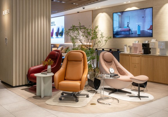 신규 매장에선 슬립·힐링케어 브랜드 ‘비렉스(BEREX)’의 침대·안마의자·의료기기 제품군 외에도 정수기·공기청정기 등 다양한 제품을 비교하고 체험할 수 있다. 특히, 국내외 디자인 어워드를 석권한 ‘비렉스 트리플체어’도 전시해놓는다.